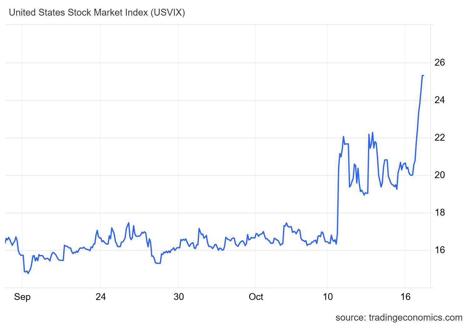 Il terzo segnale è tecnico ma chiarissimo. L’indice VIX, noto come il “termometro della paura” di Wall Street, ha avuto una brutale impennata.