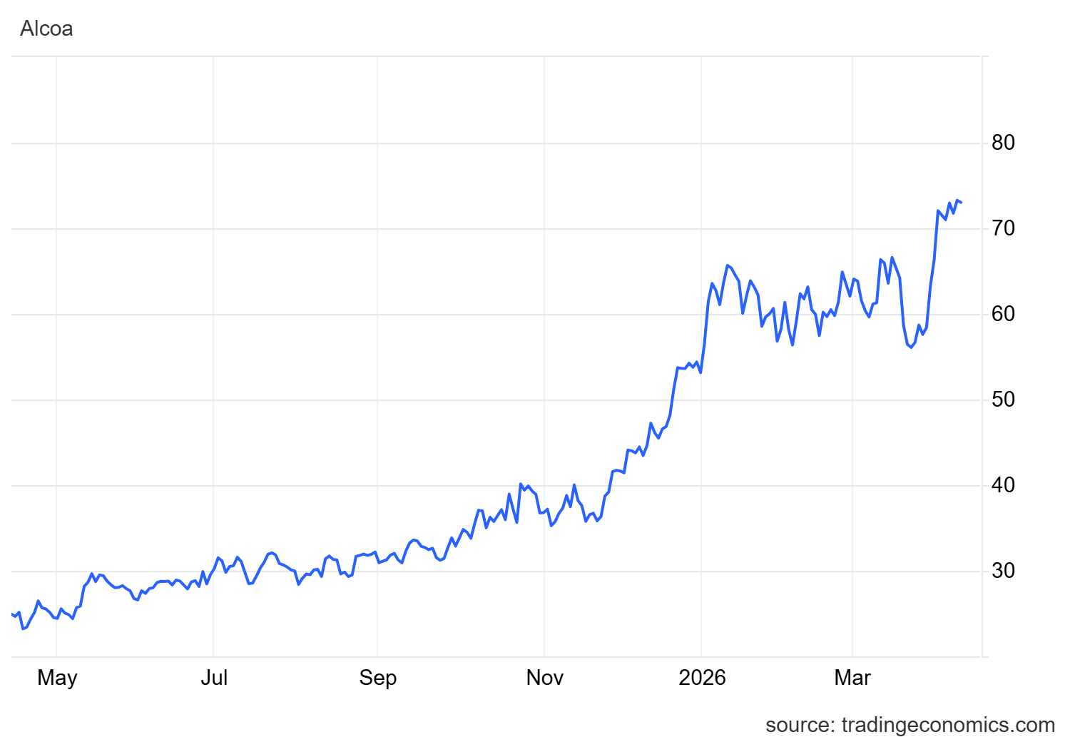 La sottile ironia di questa guerra commerciale e militare è che alcuni attori occidentali ne stanno beneficiando. I produttori americani, come Alcoa, stanno vedendo un’impennata degli ordini da parte di clienti disperati che prima si rifornivano a buon mercato in Medio Oriente. JP Morgan ha prontamente alzato il rating di Alcoa a neutral, e il titolo in borsa è passato in pochi giorni da 58 a 72 dollari.