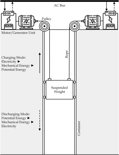 Il sistema non è fantascienza, ma solida ingegneria meccanica. I componenti chiave sono un motogeneratore, funi di sollevamento, ingranaggi di trasmissione e una massa pesante (solitamente blocchi di acciaio o cemento). Il tutto gestito da un pozzo verticale, simile a quello di un ascensore.