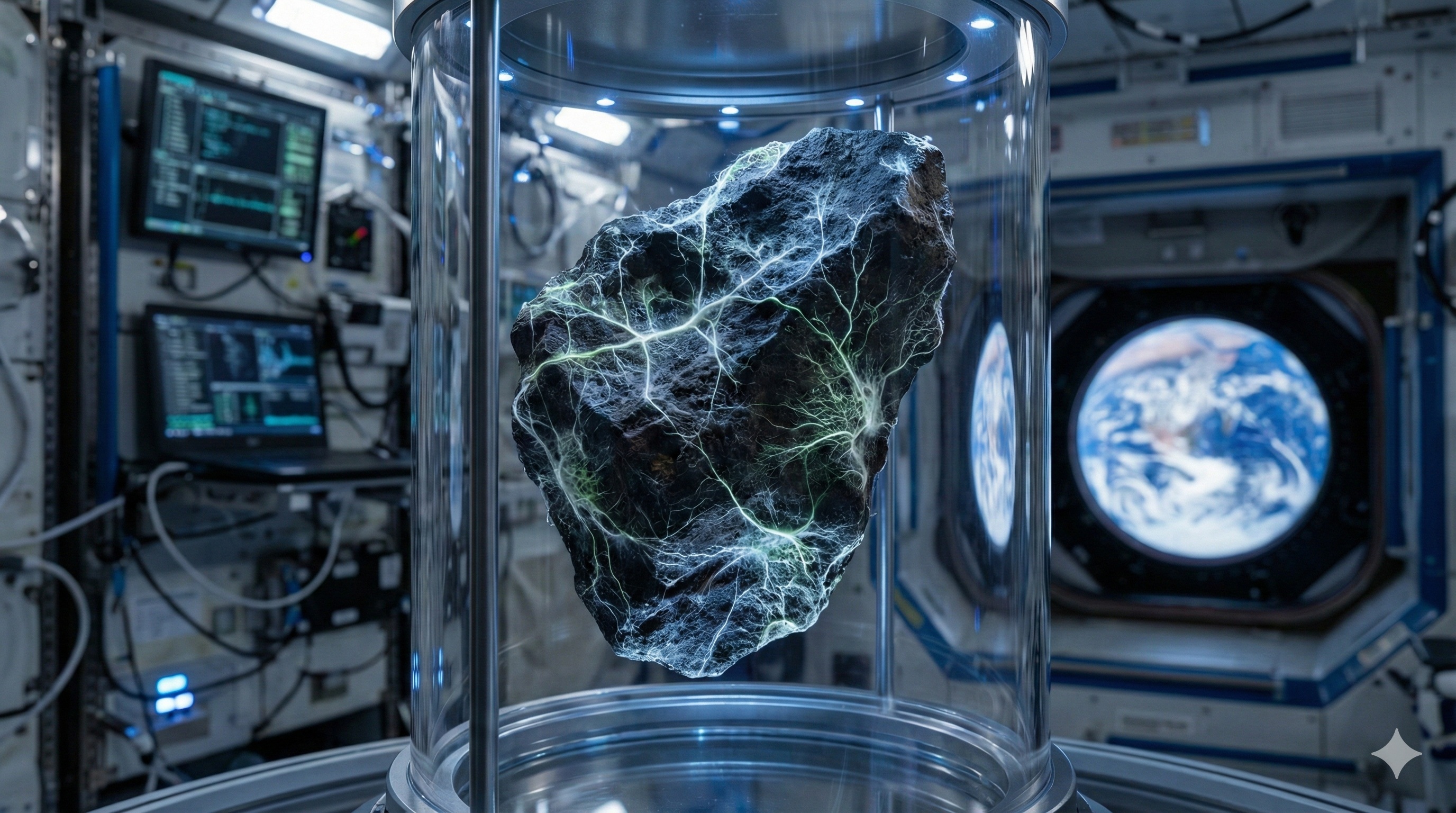- Adattamento metabolico: L’analisi metabolomica (lo studio dei processi chimici cellulari) ha svelato che lo stress della microgravità ha spinto il fungo a produrre maggiori quantità di acidi carbossilici. Questi acidi agiscono come agenti complessanti, “sbloccando” i metalli dalla matrice rocciosa del meteorite. È come se l’ambiente ostile avesse reso il fungo più “affamato” e aggressivo nell’attaccare la roccia.
