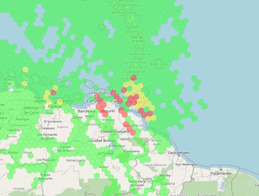Da un lato, la nazione arcipelago di Trinidad e Tobago, vicinissima alle coste venezuelane, ha messo le sue forze armate in massima allerta. Dall’altro, come mostra chiaramente l’immagine allegata (proveniente dal sito specializzato gpsjam.com), l’intera area costiera vicino a Caracas e che coinvolge la stessa Trinidad è soggetta a pesanti e anomali disturbi del segnale GPS.