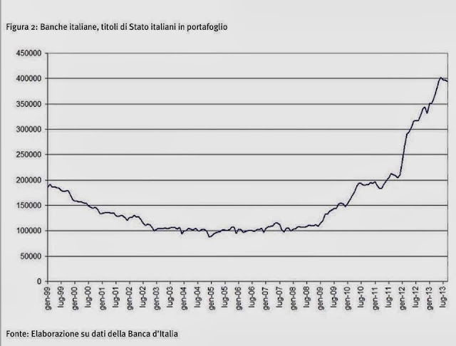 Dalle banche italiane che, da gennaio 2011 fino a luglio 2013, hanno incrementato le loro posizioni in titoli di stato di circa 200 miliardi di euro, contribuendo (grazie alle 2 operazioni LTRO della BCE e al minacciato piano OMT di Draghi) ad abbattere lo spread fino ai livelli attuali.