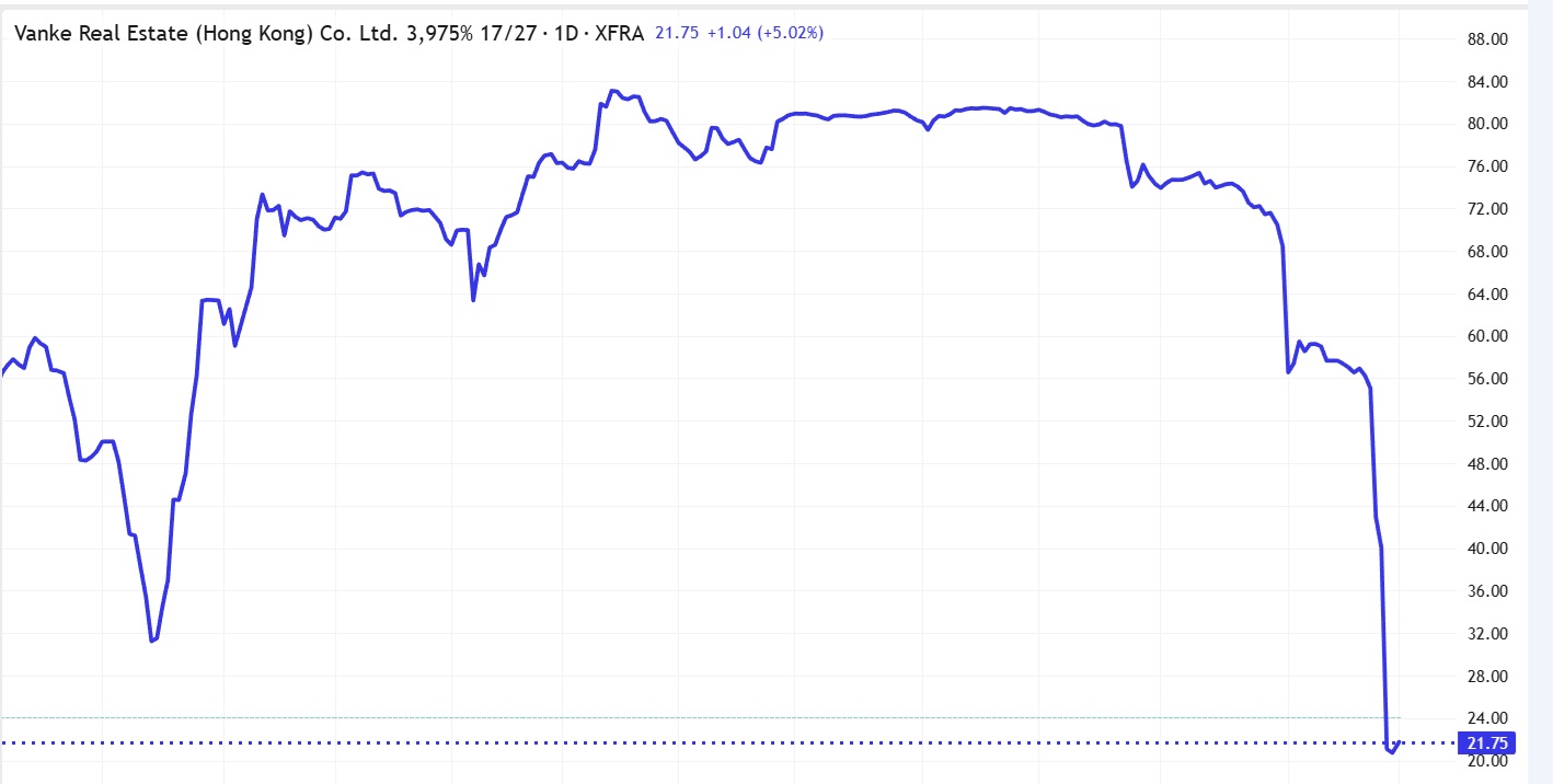 Le Banche chiudono i rubinetti: Secondo indiscrezioni, almeno due grandi banche locali hanno respinto la richiesta di Vanke per un prestito di liquidità a breve termine che serviva proprio a ripagare i bond in scadenza. Questo, in un paese piuttosto generoso dal punto di vista bancario, non è un buon segnale.