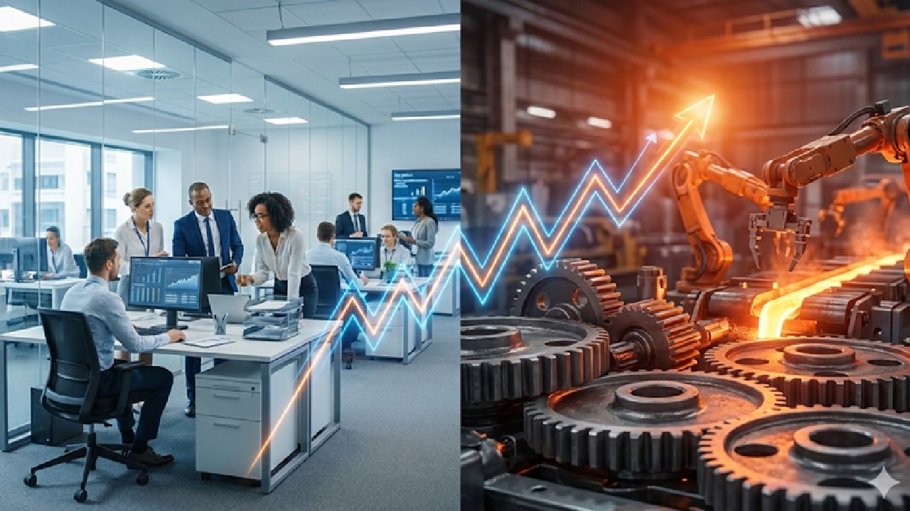 A gennaio PMI Servizi a 52,3 e Manifatturiero a 50,3. L’export salva i conti, ma i costi dei metalli spingono l’inflazione industriale. Crolla la fiducia delle imprese.