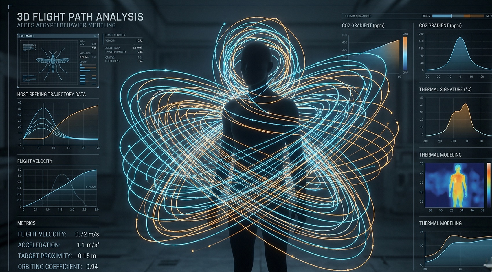 La validazione di queste equazioni è arrivata con i test umani. Un ricercatore, indossando abiti con forti contrasti (bianco e nero) e posizionandosi nella camera, ha confermato freddamente le teorie matematiche. Per una zanzara, l’essere umano è percepito primariamente come una geometria solida scura che emette gas. Le concentrazioni maggiori di insetti si sono formate attorno alla testa e alle spalle, le zone che offrono il massimo contrasto visivo e la massima vicinanza alla fonte di anidride carbonica.