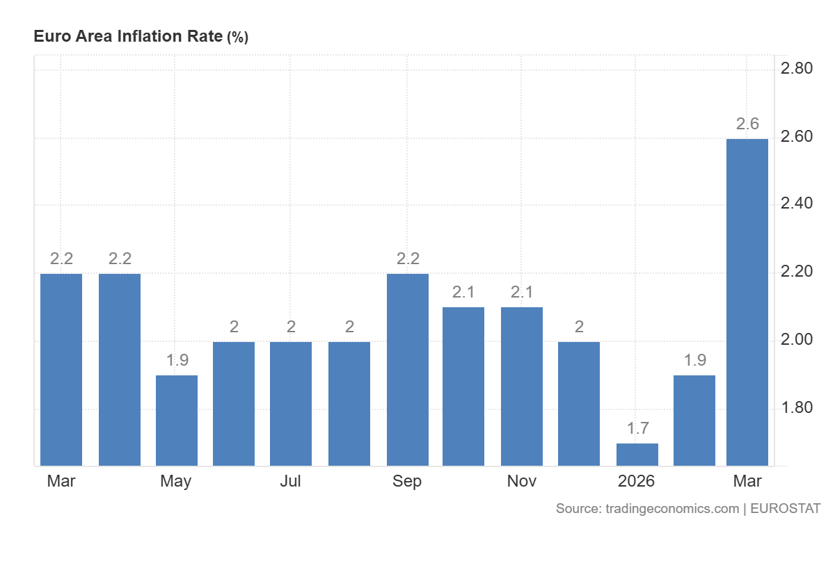 Il contesto geopolitico è noto ed estremamente volatile. Con la chiusura dello Stretto di Hormuz – che permane nonostante il fragile cessate il fuoco dell’8 aprile – e le tensioni tra Stati Uniti, Israele e Iran, i prezzi dell’energia hanno ripreso a correre. Di conseguenza, il tasso di inflazione annuale dell’Eurozona è balzato al 2,6% a marzo, in netta risalita rispetto all’1,9% di febbraio.