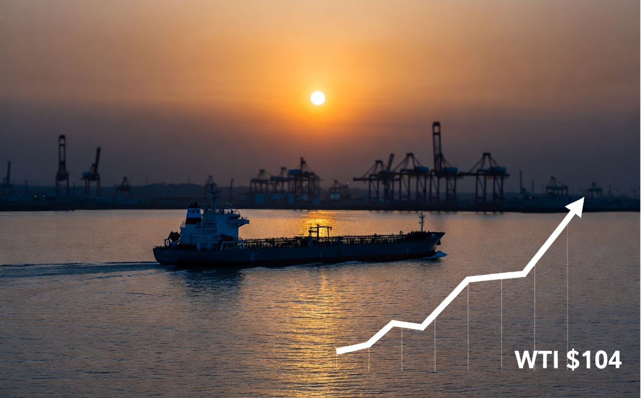 Il blocco dello Stretto di Hormuz spinge il petrolio WTI a 104 dollari. Il Bangladesh chiede agli USA una deroga per il gasolio russo, ma l’FMI lancia l’allarme: rischio shock energetico globale.