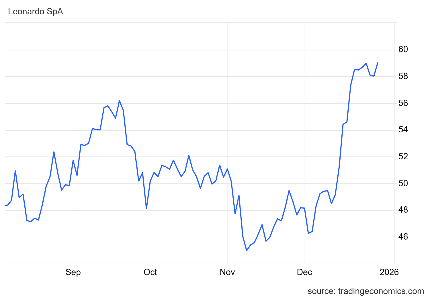 Inoltre, il produttore di munizioni Czechoslovak Group ha confermato i piani per un’IPO ad Amsterdam nelle prossime settimane, segnale di un mercato dei capitali ancora affamato di questi asset. Insomma i venti di guerra arricchiscono l’industria europea dell’armamento. A margine, anche Leonardo non va male…