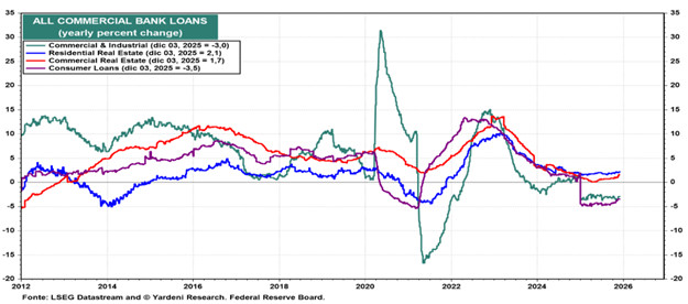 Il primo indizio è che il credito bancario negli USA non cresce più specialmente nelle sue componenti legate al credito al consumo e attività produttive, quindi c’è una significativa contrazione della moneta in circolazione nel sistema economico.