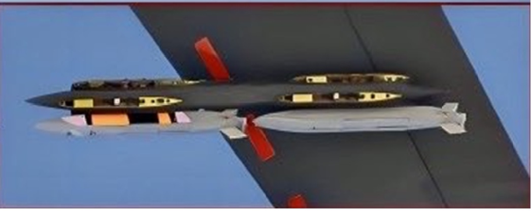 Appesi a un rack multiplo c’erano due missili dalla forma inedita, cuneiforme e con una coda a “T” rovesciata. L’identikit è quasi certo: si tratta del nuovo missile da crociera nucleare stealth AGM-181 Long-Range Standoff (LRSO), nel suo primo, probabile, avvistamento pubblico.