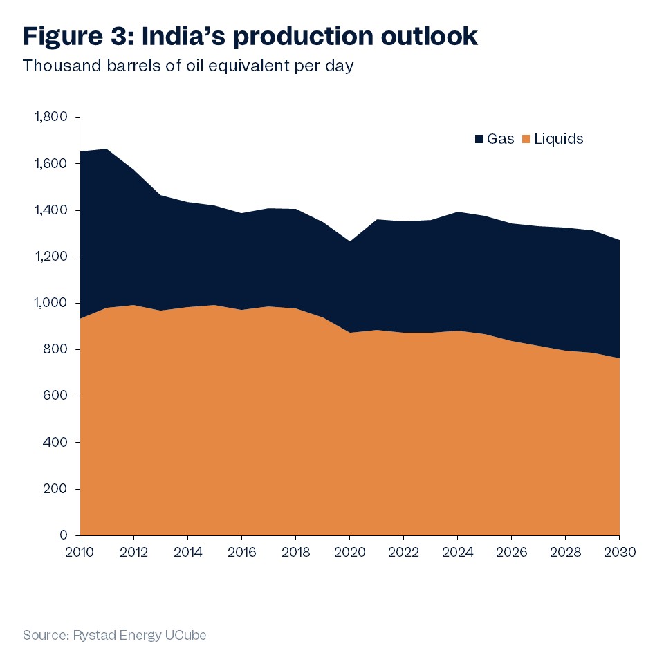 Il punto centrale non è il singolo pozzo, ma ciò che esso rappresenta per la sicurezza energetica ed economica dell’India. Il Paese si trova di fronte a un dilemma: la sua produzione interna di gas continua a diminuire, mentre la domanda esplode.