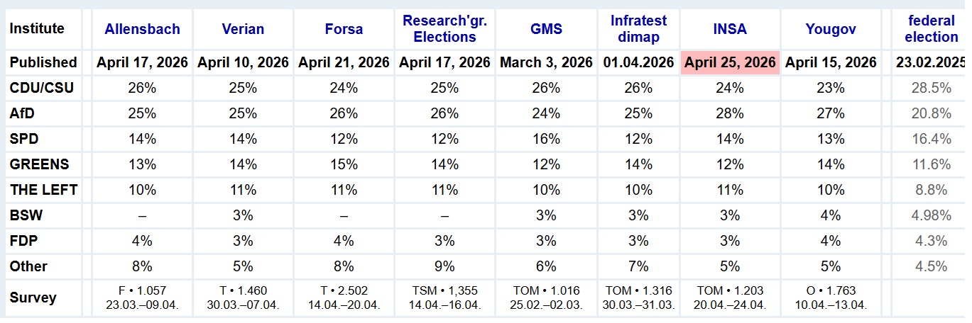 - AfD: 28% (+1 punto percentuale)