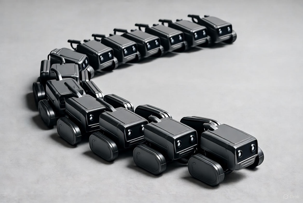 1. Come fanno questi robot a “decidere” cosa fare senza un cervello centrale? Non c’è una “decisione” cosciente. L’intelligenza dello sciame è emergente, il che significa che nasce spontaneamente dalle interazioni locali basate su regole semplicissime. Ogni robot non sa nulla dello stato complessivo dello sciame; si limita a muoversi verso il suono più forte e a sincronizzare la propria frequenza. Il comportamento complesso e coordinato, come la formazione di un “serpente” o l’auto-riparazione, è il risultato collettivo di queste due sole azioni, ripetute da tutti i membri dello sciame.
