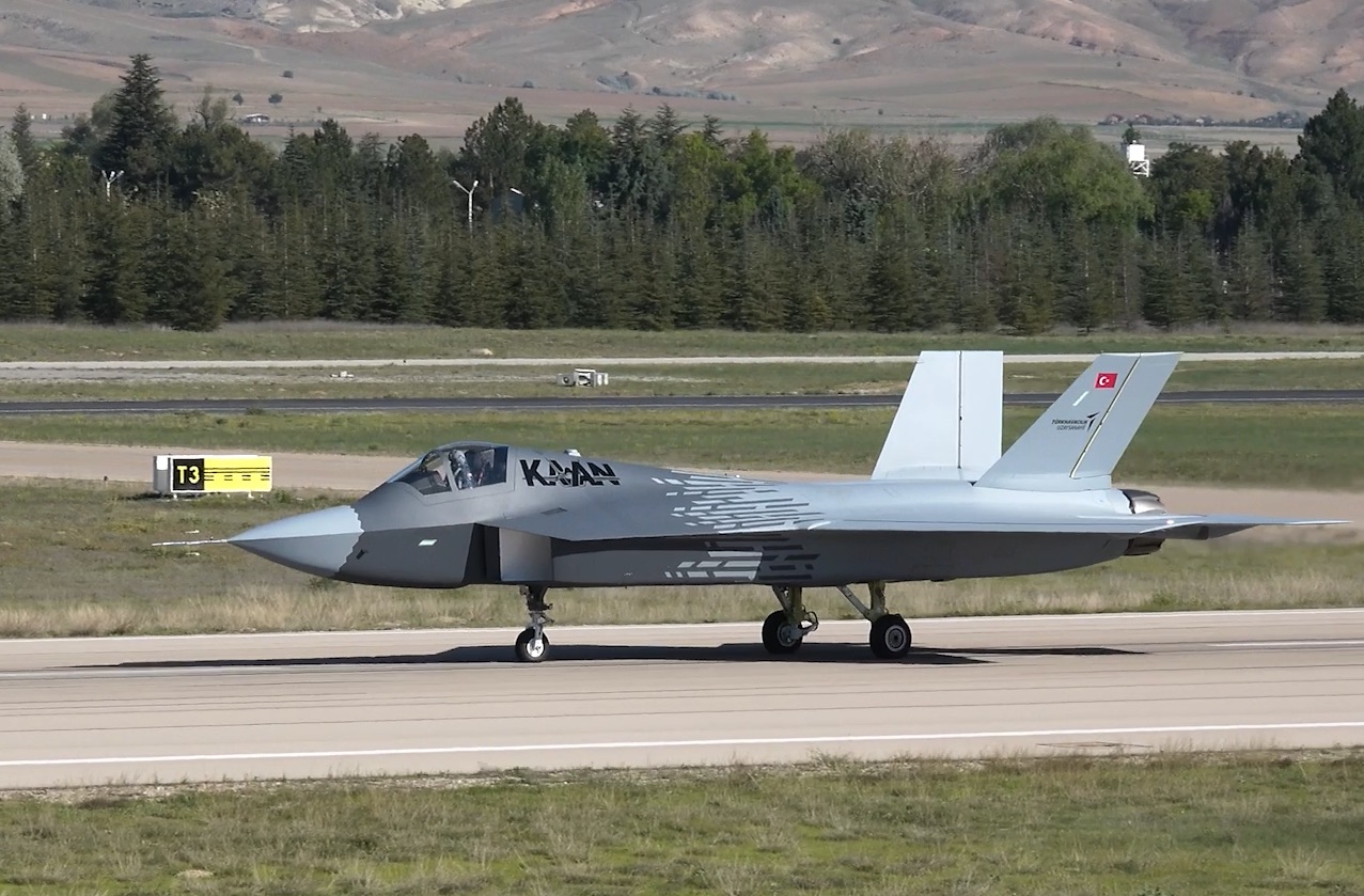 Il prototipo KAAN sulla pista di decollo – PRESIDENCY OF DEFENCE INDUSTRIES OF TURKIYE / HANDOUT ( TUR Defence Industries Presidency – Anadolu Agency )