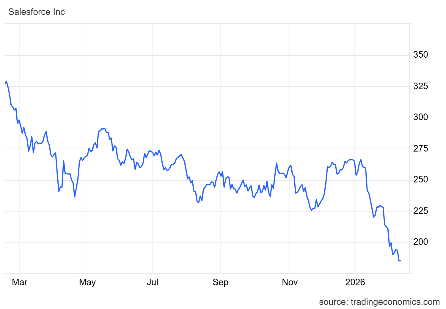 Volete un esempio pratico? Guardate le quotazioni di SalesForce che ha avuto un calo del 43% in un anno. Siamo sulla buona strada per seguire il settore dell’editoria: