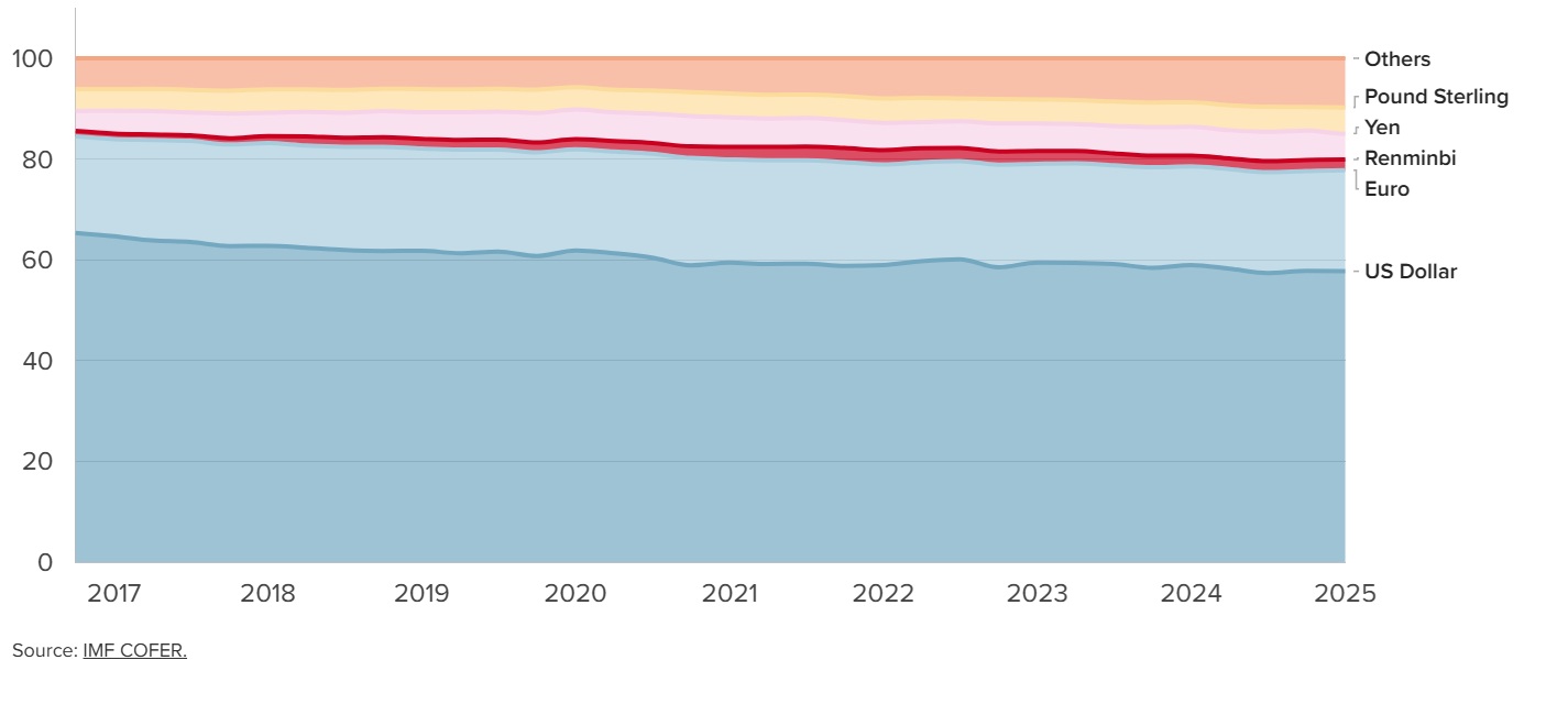 Mentre l’euro langue intorno a una quota del 20% dalla crisi del debito sovrano, la vera anomalia risiede nel blocco delle cosiddette “valute di riserva non tradizionali”. Monete un tempo considerate periferiche hanno raddoppiato la loro quota aggregata dal 2021, arrivando al 6,1% e superando di slancio lo yen giapponese. È qui che sta avvenendo la vera diversificazione lontano dal dollaro.