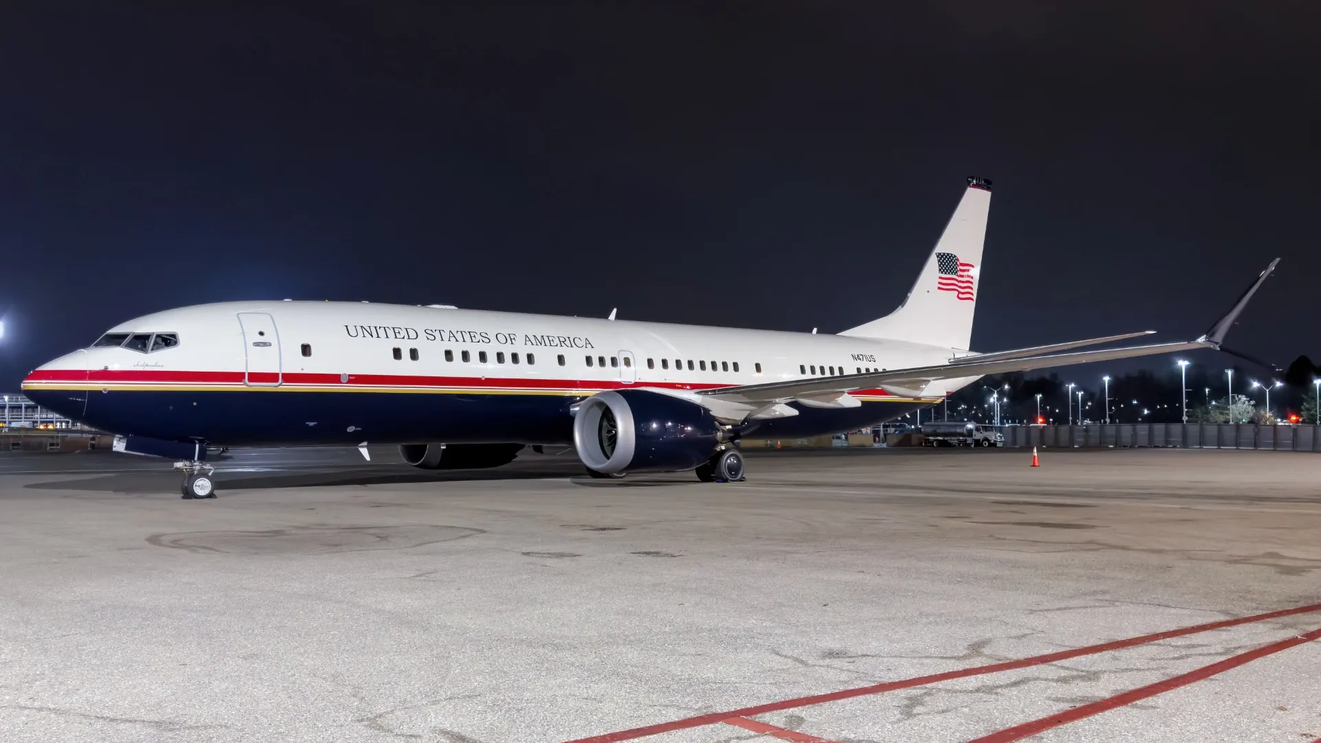 Mentre ci si interroga sugli interni, l’aereo non sta fermo. Appena apparso a Washington, il N471US è decollato per un tour intercontinentale che ha poco a che fare con il confine messicano.