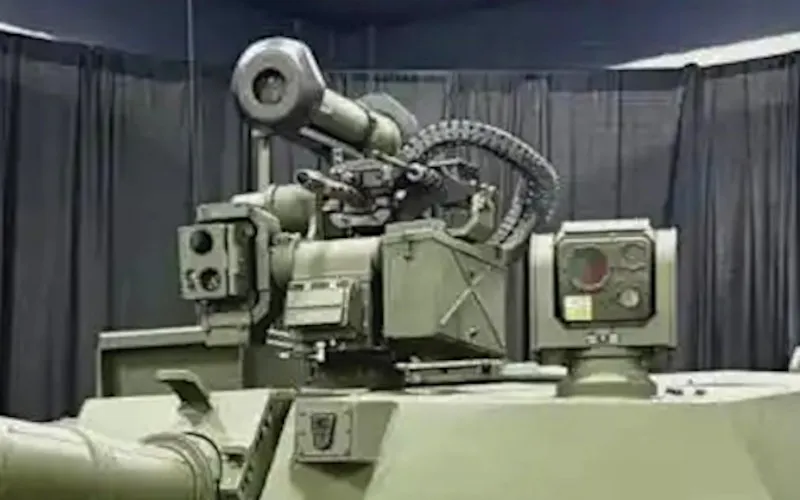 Mitragliatrice automatica accompagnata , sulla destra, dal sistema di puntamento fornito dalla Leonardo e visto sul prototipo. Da Us Army