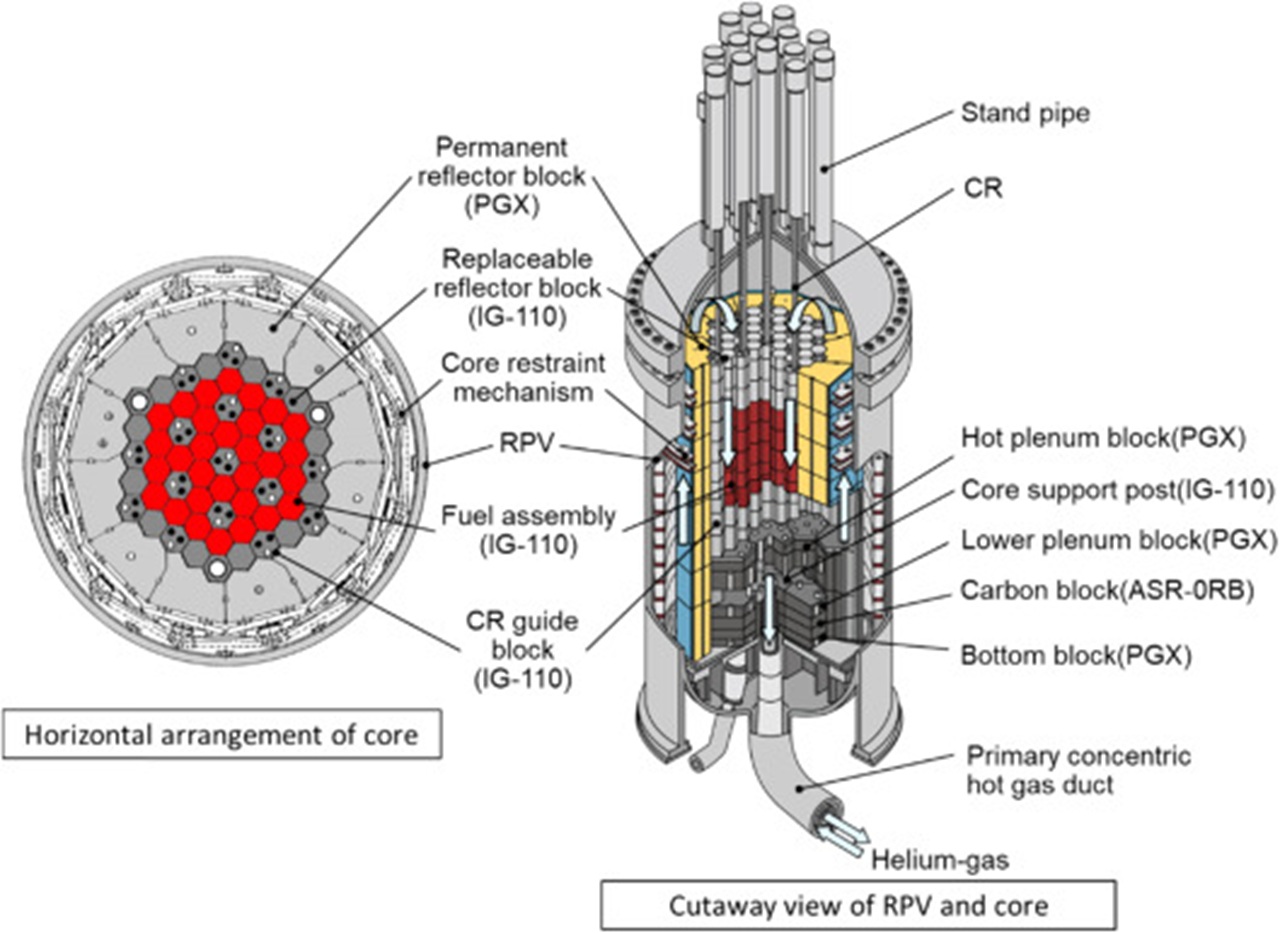 La differenza fondamentale tra i reattori HTGR e quelli ad acqua leggera è che il refrigerante è l’elio anziché l’acqua, e che per il nocciolo del reattore viene utilizzata la grafite. Ciò consente di realizzare una struttura che non porterà alla fusione del nocciolo, nemmeno in caso di perdita della capacità di raffreddamento forzato, come accaduto nell’incidente nucleare di Fukushima Daiichi. L’elio è chimicamente inerte e non reagisce con l’acqua o l’ossigeno causando un’esplosione.