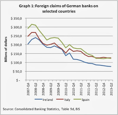La prima indicazione che il peggio era ormai passato, è probabilmente stata il fatto che la Deutsche Bank non ha partecipato alla seconda operazione LTRO del febbraio 2012. Nel secondo trimestre del 2012, cioè il trimestre precedente all’annuncio di Draghi del programma OMT, i crediti delle banche tedesche nei confronti dei debitori spagnoli e italiani hanno toccato il minimo, e la tendenza al ribasso per quanto riguarda i crediti nei confronti dei mutuatari irlandesi è rallentata. Le banche tedesche hanno anche ottenuto tempo per l’attuazione dell’Unione bancaria e le sue diverse componenti. Qualunque siano i problemi che possono avere ora le banche tedesche, la loro esposizione verso i paesi europei in difficoltà non è ormai un problema importante, e forse non è affatto un problema. Ed esse non hanno alcun bisogno di fare prestiti a queste economie problematiche: hanno da alimentare un mercato immobiliare interno in pieno boom.