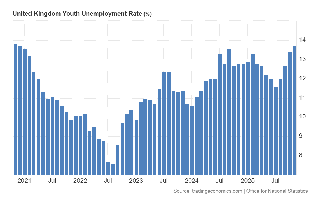 Il tasso di disoccupazione giovanile nel Regno Unito supera quello dell’UE per la prima volta nella storia. Tra l’aumento vertiginoso del salario minimo e un’economia stagnante, ecco perché oltre 700.000 giovani britannici sono tagliati fuori dal mercato del lavoro, sfiorando i livelli del periodo Covid.
