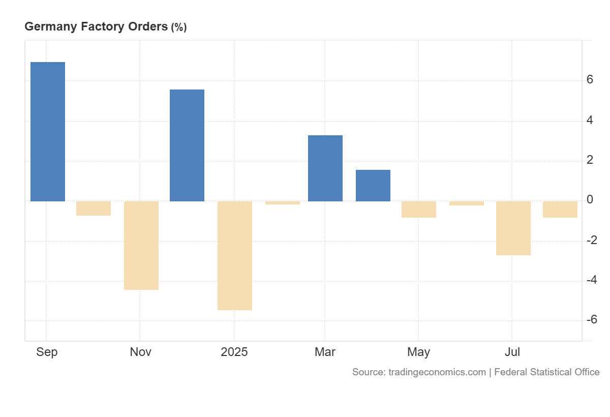 L’agenzia statistica federale, Destatis, ha messo nero su bianco una realtà difficile da ignorare. Gli ordini industriali ad agosto sono calati dello 0,8% rispetto a luglio, segnando il quarto calo consecutivo e deludendo profondamente le attese degli analisti, che prevedevano un rimbalzo dell’1,2%.