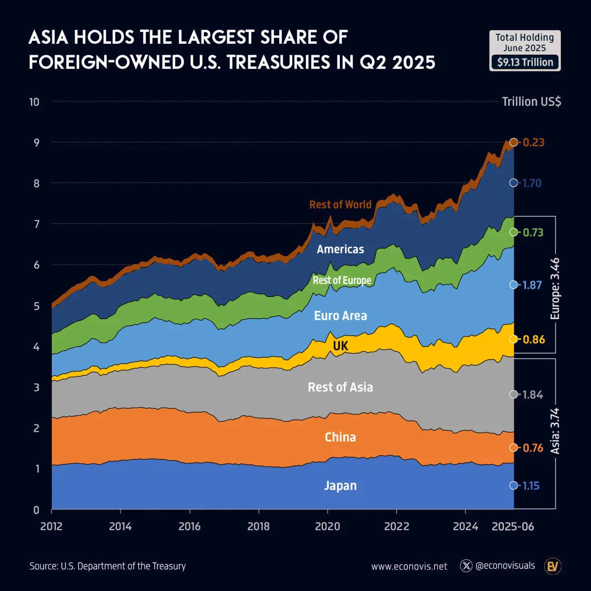 Sappiamo già che l’anello debole della catena europea resta il debito francese, dove lo stress finanziario è destinato a continuare. Tuttavia, la speranza è che la “bomba giapponese” rimanga una minaccia inesplosa, un avvertimento piuttosto che una detonazione. Del resto il Giappone è attivo più che altro sul debito americano, come si può vedere da questo grafico:
