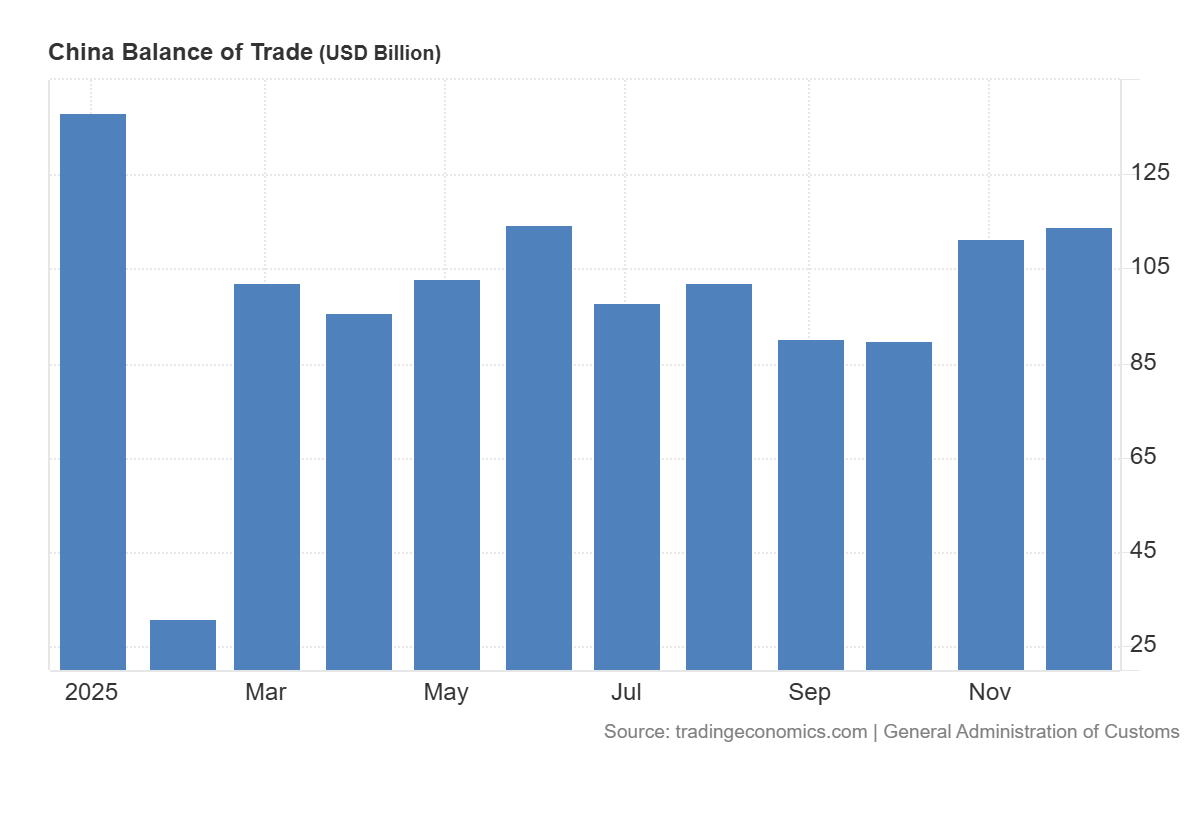 - Surplus commerciale 2025: 1.189 miliardi di dollari (Record storico).