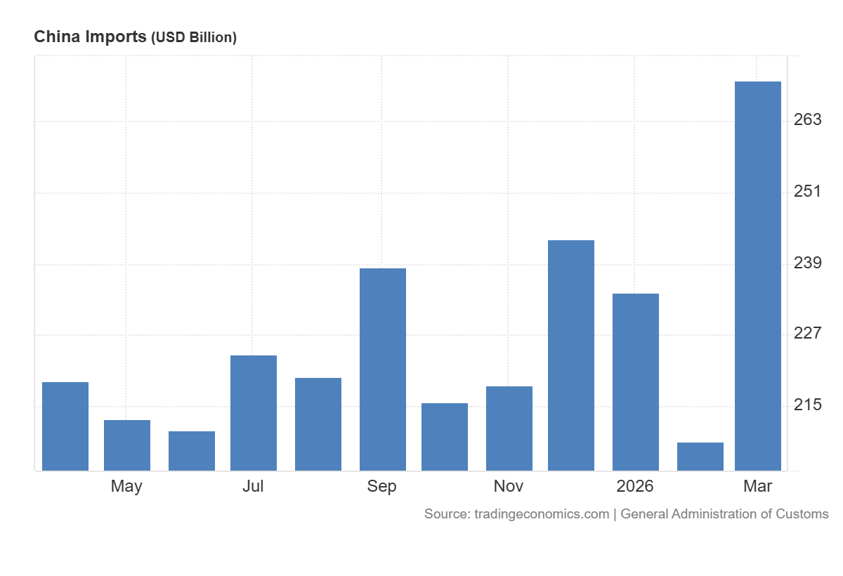Mentre l’export rallenta, le importazioni crescono. Non per una improvvisa esplosione dei consumi interni, ma per una precisa scelta strategica di Pechino: l’accaparramento. Con i costi energetici alle stelle, la Cina sta accumulando materie prime e gestendo flussi di gas verso l’Estremo Oriente per mettere in sicurezza la propria industria. Ecco l’andamento dell’Import sempre secondo Tradingeconomics: