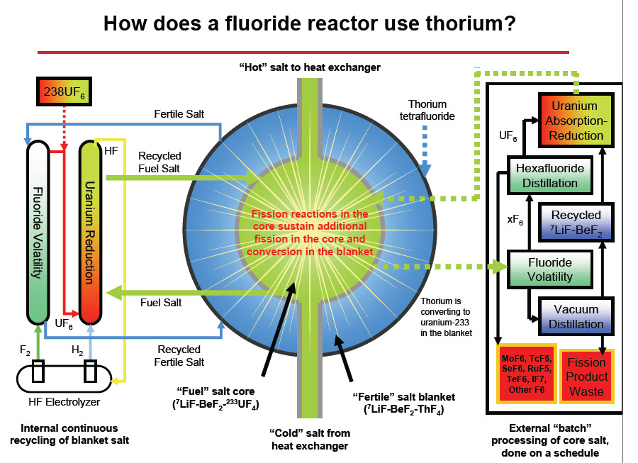 - Raffreddamento Passivo: Sono presenti due sistemi passivi di rimozione del calore di decadimento. Nello scenario peggiore, il combustibile a sale fuso cadrebbe in una camera di sicurezza e si solidificherebbe, intrappolando tutti i materiali radioattivi.