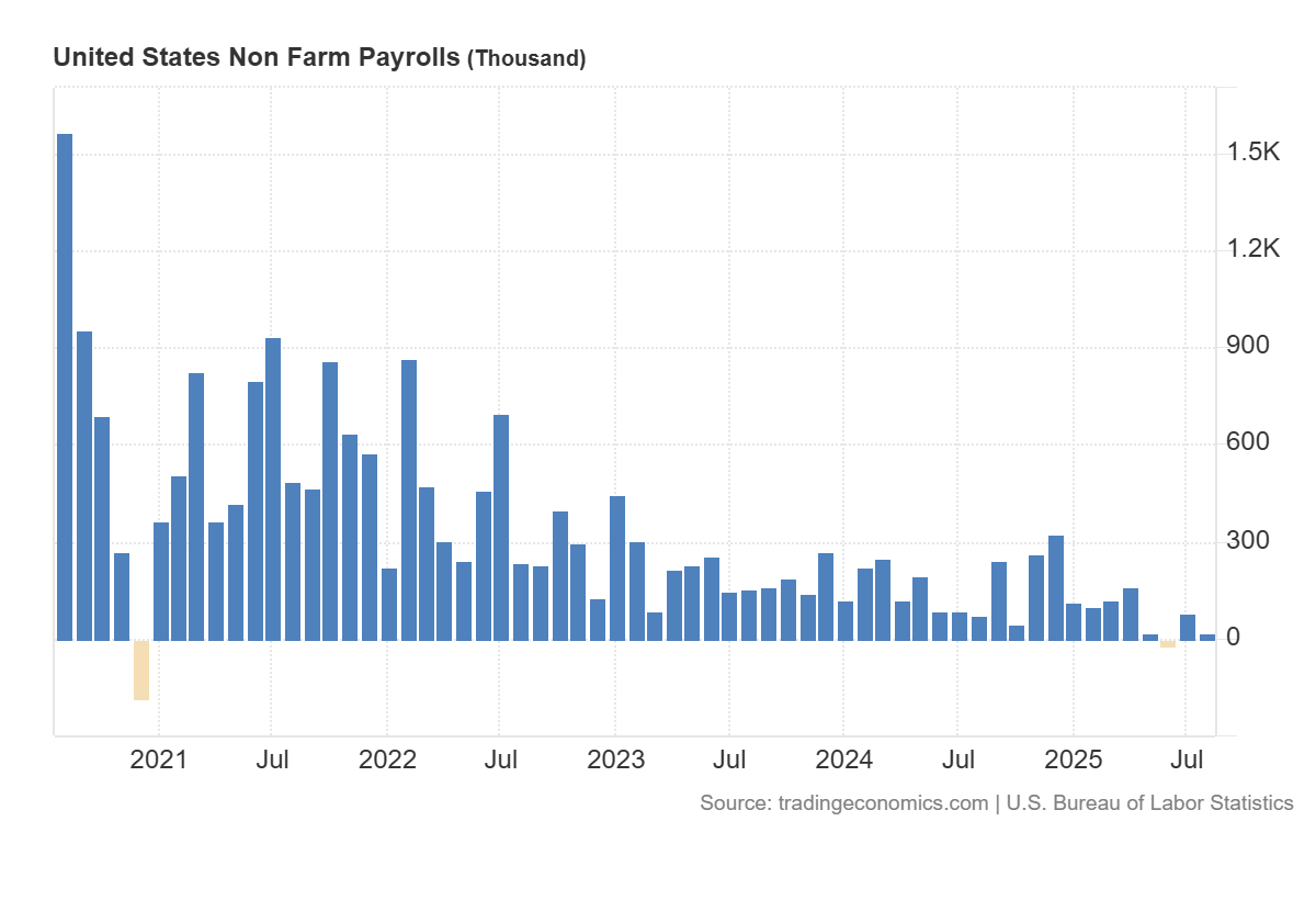 Per quanto riguarda il mercato del lavoro, Powell ha negato un “deterioramento significativo”, ma ha ammesso che la creazione di posti è “molto bassa”. Del resto basta leggere i dati fino ad agosto per capire che cosa sta succedendo, con un forte calo nella creazione di nuovi posti di lavoro: