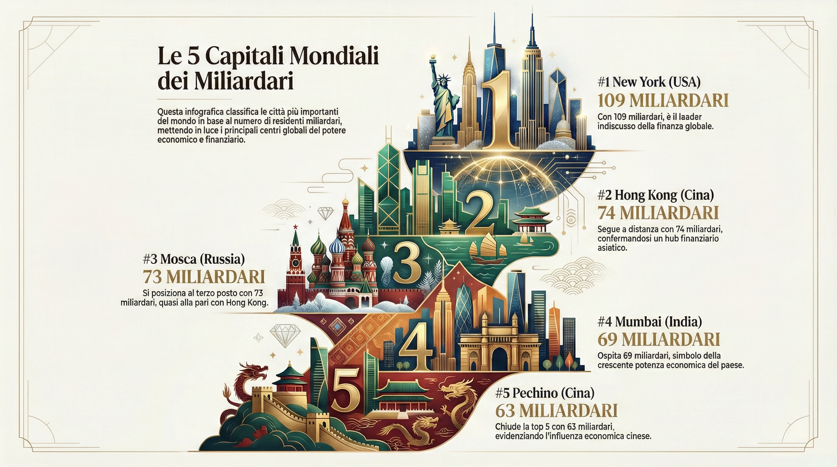 New York domina, l’Asia conquista la top 10 e Mosca sorprende. Ecco la mappa globale dei super-ricchi e dove si posiziona Milano nella classifica dei patrimoni mondiali.