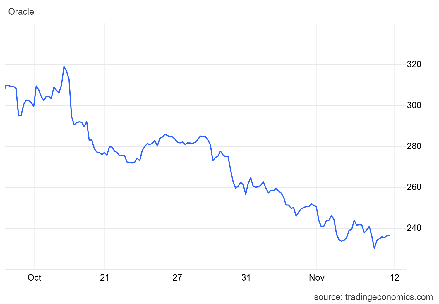 Brutte giornate per Oracle, uno dei colossi tecnologici che cavalca l’onda (o lo tsunami) dell’Intelligenza Artificiale. Dopo un mese difficile in borsa, il titolo è finito sotto la lente delle banche d’affari, che iniziano a suonare un campanello d’allarme.