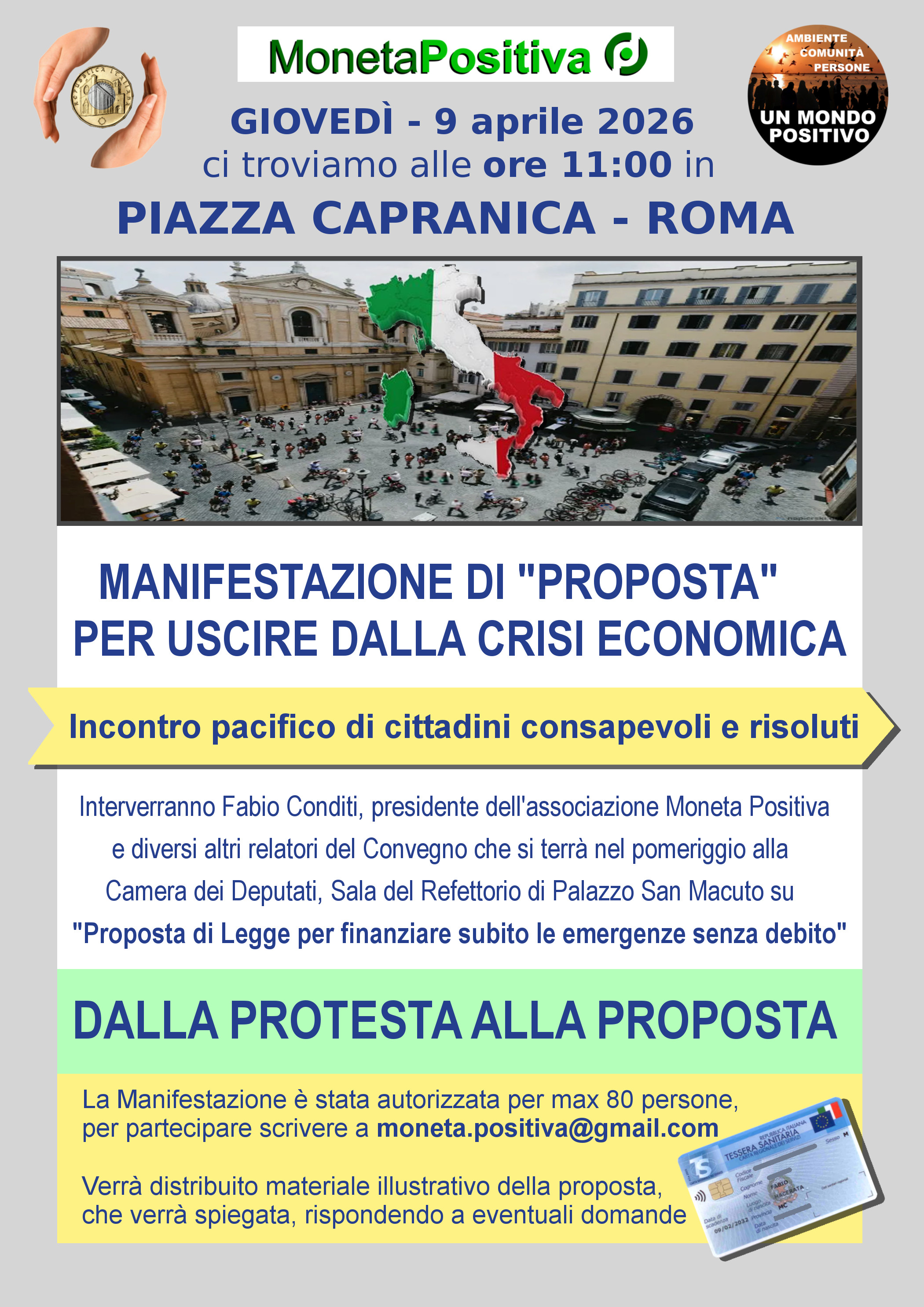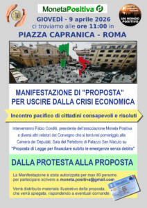 La mattina ci sarà anche una Manifestazione di “Proposta” in Piazza San Macuto, dalle ore 11:00 alle ore 13:00, dove si potranno riunire i cittadini consapevoli e risoluti che, secondo Margaret Mead, hanno sempre cambiato il mondo.
