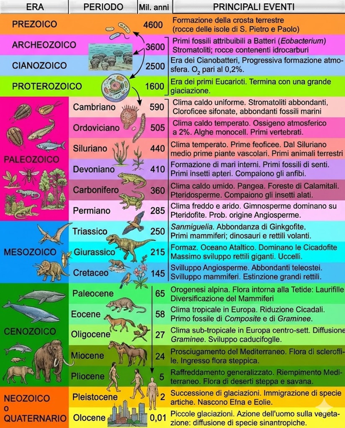 | Inizio vita complessa | Circa 1,5 – 2 miliardi di anni fa | Circa 2,9 miliardi di anni fa |