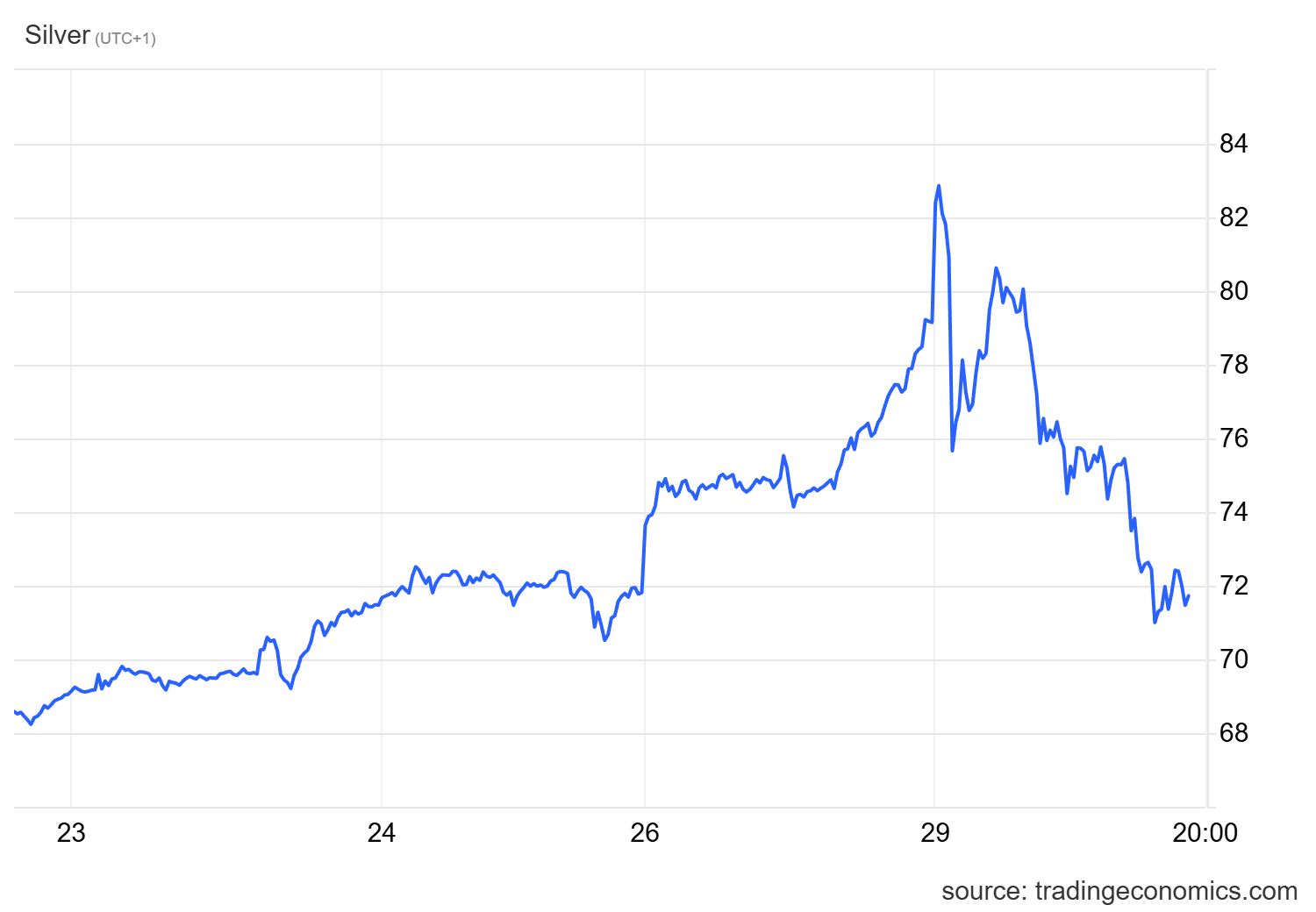 L’argento raggiunge un massimo e poi perde oltre il 10% in un giorno. Quali sono le cause? Riaggiustamento o inversione di tendenza?