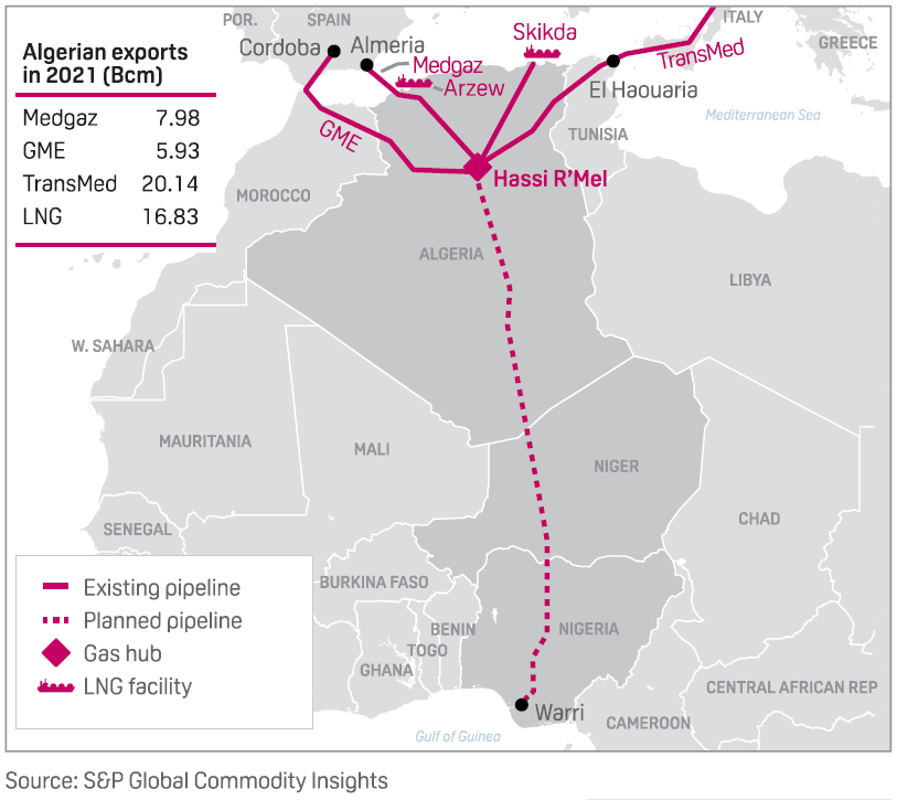 Mentre il Marocco progetta, l’Algeria ha il suo progetto concorrente: il Gasdotto Trans-Sahariano (TSGP). Mettiamoli a confronto.