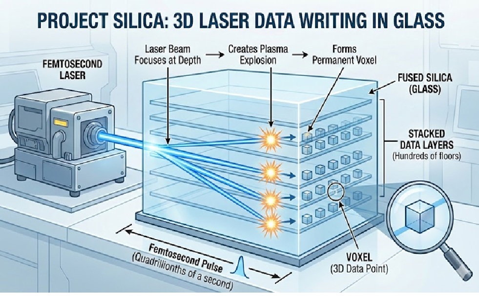 Questa micro-esplosione deforma permanentemente la struttura del vetro creando un “voxel” (un pixel tridimensionale). Modificando la profondità del laser, si possono scrivere centinaia di strati di dati sovrapposti all’interno di una lastra spessa appena 2 millimetri.