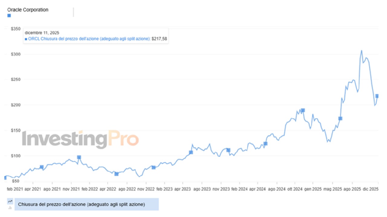 Il caso emblematico di questa seduta è Oracle. Le azioni del colosso tecnologico hanno subito il calo più drastico degli ultimi 24 anni. Grazie ad InvestingPro ecco le quotazioni recenti: