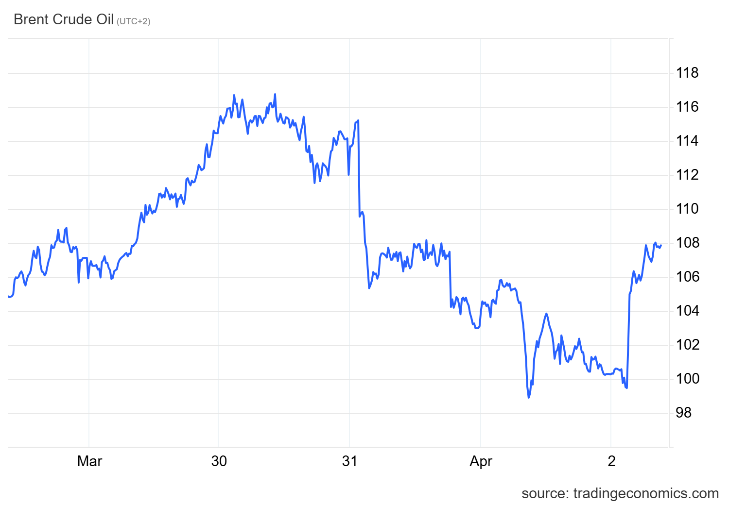 Come prevedibile di fronte a uno shock dell’offerta incerto e potenzialmente prolungato, i prezzi del petrolio hanno ripreso a correre. Il Brent ha registrato un balzo del 6%, superando ampiamente i 107 dollari al barile. La precedente ed effimera flessione delle quotazioni, dettata dall’illusione di un imminente cessate il fuoco, è stata rapidamente archiviata dagli analisti come un banale rally del primo di aprile.