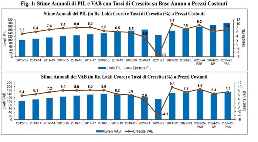 - PIL Reale: Stimato a 201,90 lakh crore di rupie (+7,4%).