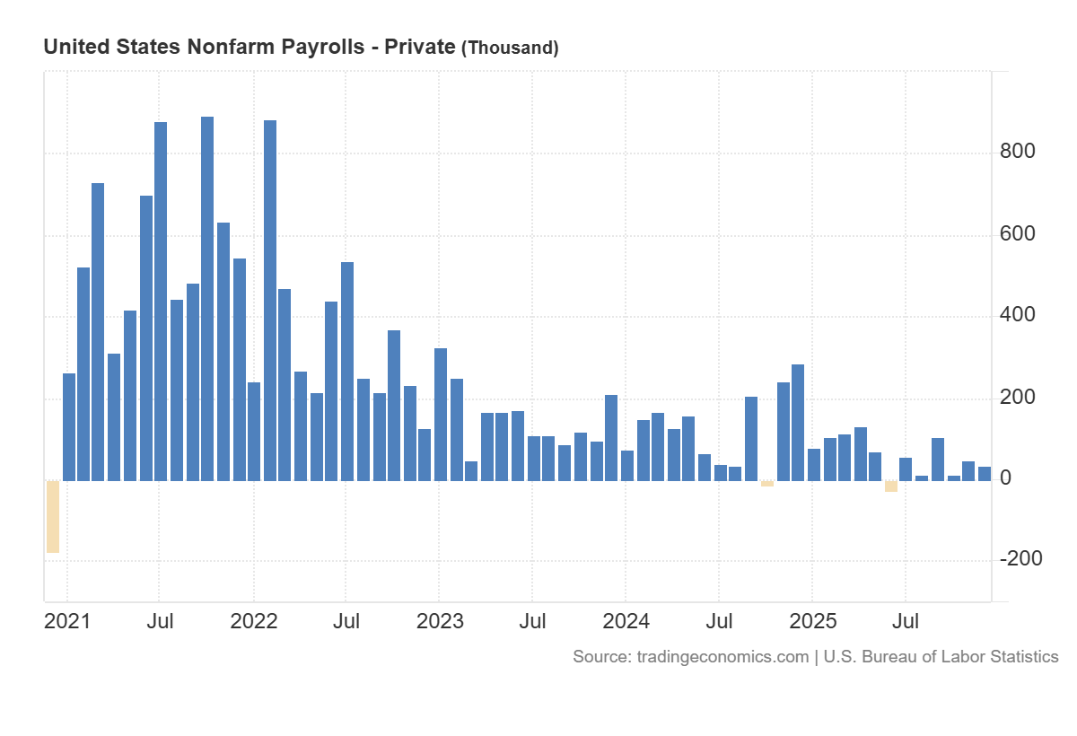 Questo fenomeno spiega, almeno in parte, la debolezza strutturale delle nuove assunzioni nel settore privato USA. Non serve licenziare in massa; basta un aumento dell’efficienza marginale, anche basso, per “congelare” la necessità di nuovi ingressi. Se tre persone con l’AI fanno il lavoro di quattro, l’azienda non assume il quarto. Il numero di nuovi posti di lavoro negli USA sta aumentando in modo asfittico, nonostante la crescita economica attiva, e probabilmente questo è proprio dovuto all’introduzione della AI.