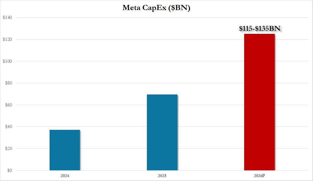 - Esplosione dei costi per l’IA: nell’ultima conferenza sugli utili, Meta ha alzato le stime di spesa in conto capitale (capex) per il 2026 alla cifra record di 115-135 miliardi di dollari. Si tratta di un valore più che raddoppiato rispetto agli anni precedenti, un azzardo finanziario che fa impallidire persino i miliardi bruciati nella fallimentare corsa al Metaverso.