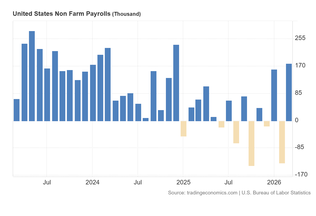 | Nuovi Occupati (NFP) | +178.000 | +65.000 | -133.000 (rivisto) |