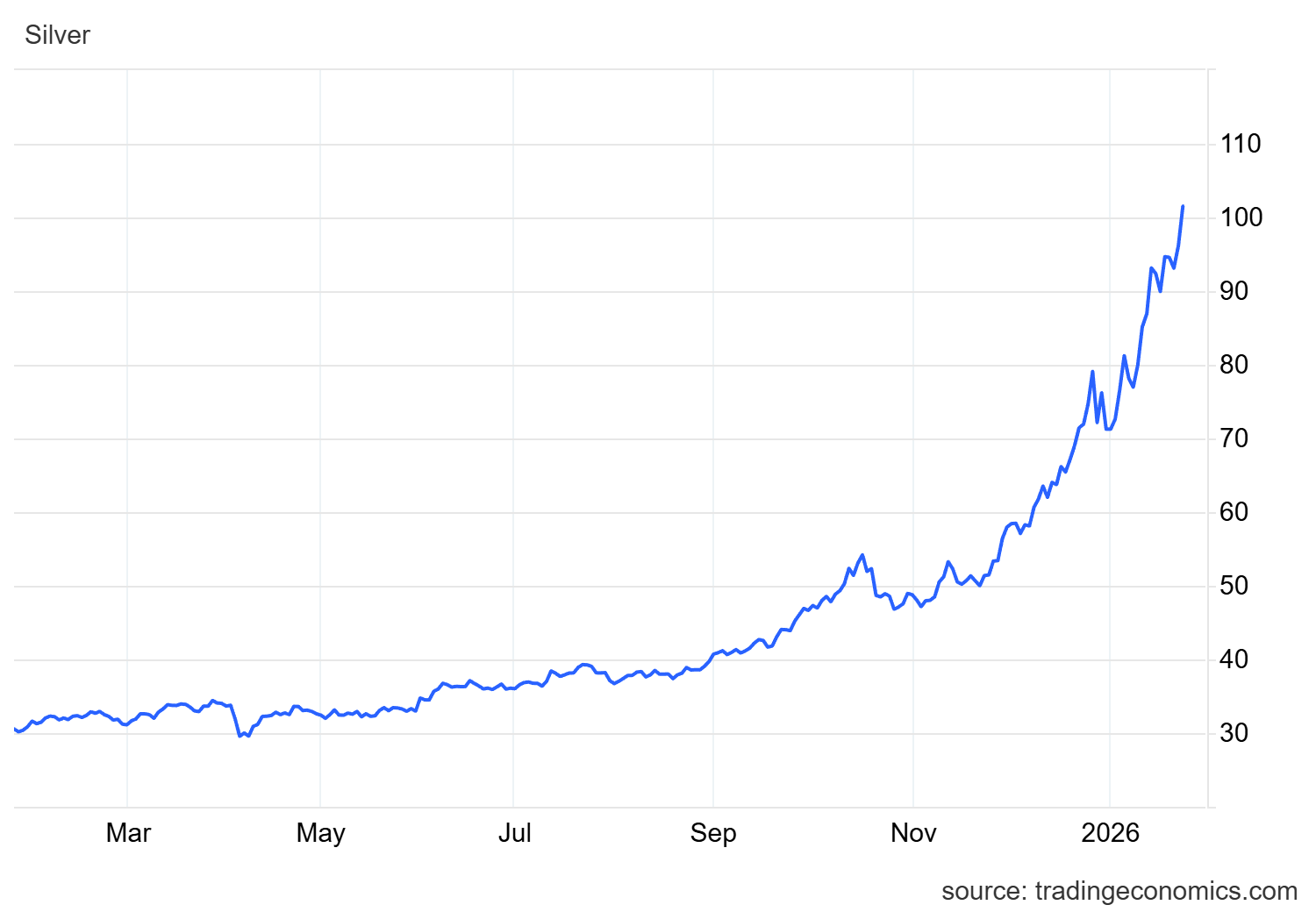 Venerdì i mercati dei metalli preziosi hanno infranto nuove barriere storiche, guidati da dati macroeconomici statunitensi più tenui del previsto e da un’incertezza geopolitica che non accenna a diminuire. L’oro ha raggiunto un nuovo record, sfondando quota $4.900 l’oncia, , ma il vero protagonista della giornata è stato l’argento, che ha superato l’inedita soglia dei $100 al grammo.