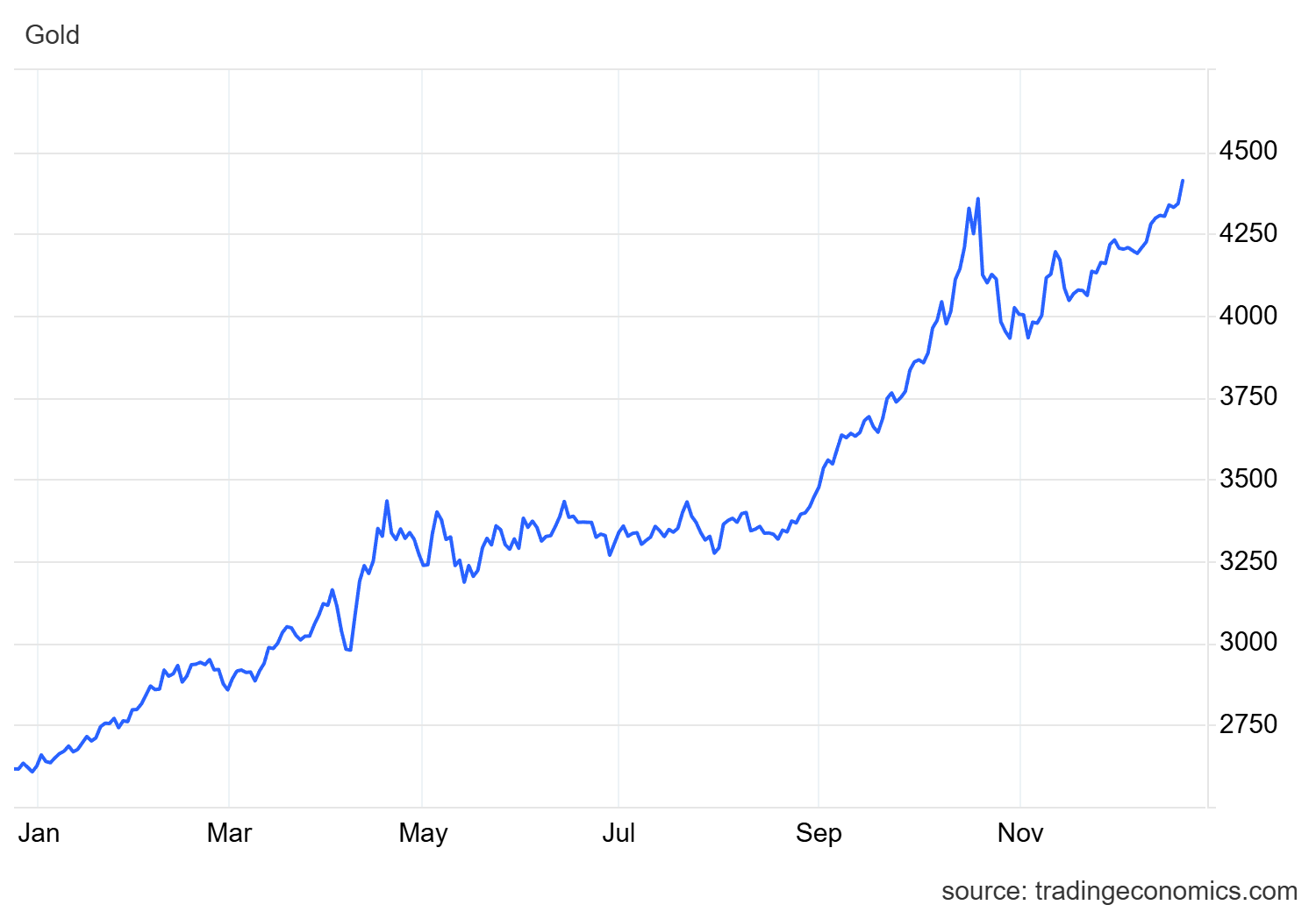 Mentre ci prepariamo a chiudere un 2025 che rimarrà negli annali della storia finanziaria, i mercati delle materie prime ci regalano un finale col botto. Non stiamo parlando delle solite criptovalute o dell’ultima bolla tech, ma del ritorno prepotente del “denaro vero”. L’oro ha superato ogni aspettativa, toccando oggi il record storico di oltre 4.40o dollari l’oncia, spinto dalle attese di ulteriori tagli dei tassi da parte della Federal Reserve.