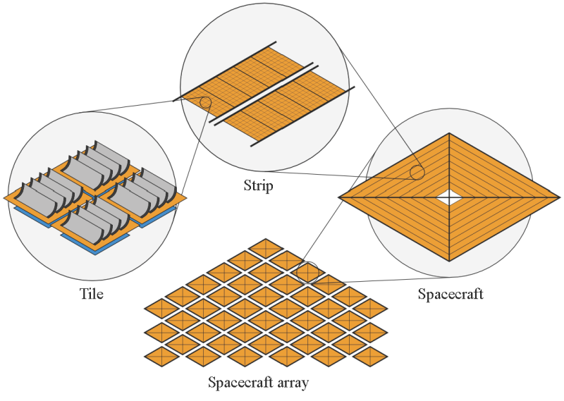 Questi due team hanno unito i loro progressi in prototipi funzionali di una “piastrella” di circa 10 cm di lato, che combina la cattura dell’energia solare, la conversione in RF e la trasmissione wireless. Queste piastrelle altamente integrate e molto flessibili pesano meno di un decimo di oncia (meno di 2,8 g) ciascuna, e sono progettate per ripiegarsi in una configurazione con spazio sprecato sostanzialmente nullo, per essere messe in un veicolo di lancio e inviate in orbita, dove si dispiegheranno da sole.