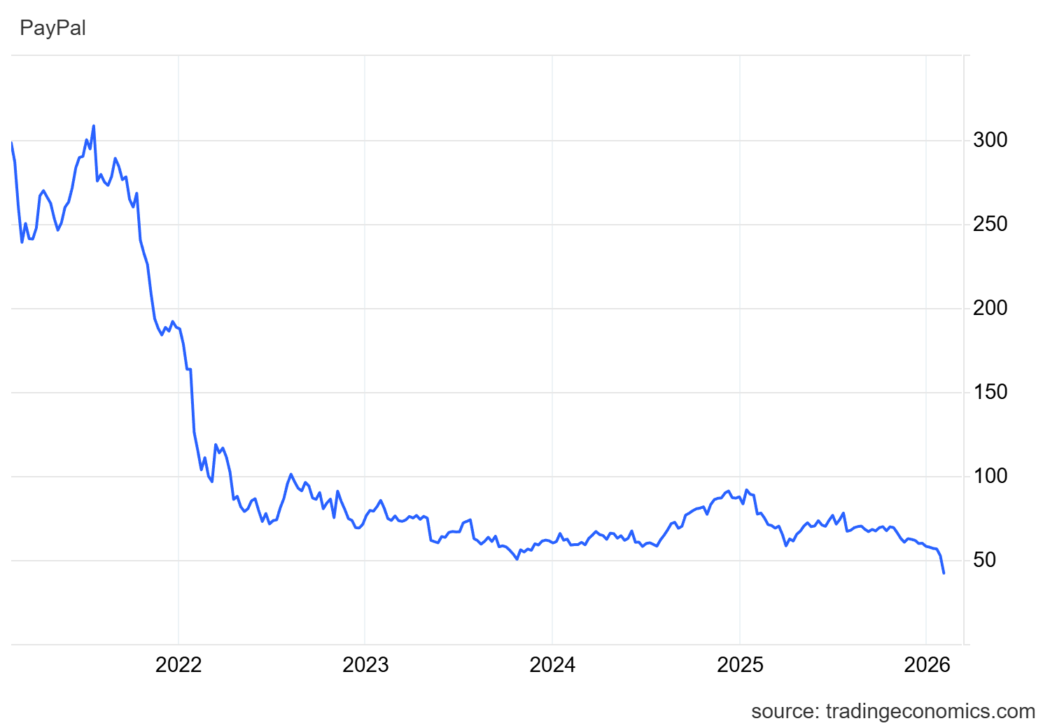 Ma per capire la gravità della situazione, bisogna allargare l’inquadratura. Il titolo ha perso l’86% dal suo massimo storico, quel picco di 308,53 dollari toccato il 23 luglio 2021, in piena euforia da meme-stock. PayPal entra così di diritto nel panteon dei “Titoli Implosi”, un club poco esclusivo riservato a chi perde almeno il 70% dai massimi recenti.