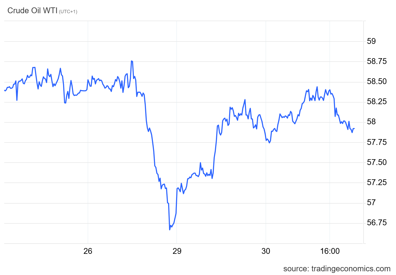 Mentre Washington guarda a Teheran e Caracas, a Mosca la situazione si fa tesa. I prezzi del greggio hanno trovato supporto nelle notizie secondo cui Vladimir Putin avrebbe comunicato a Trump l’intenzione di rivedere la posizione della Russia nei colloqui di pace mediati dagli USA per l’Ucraina.
