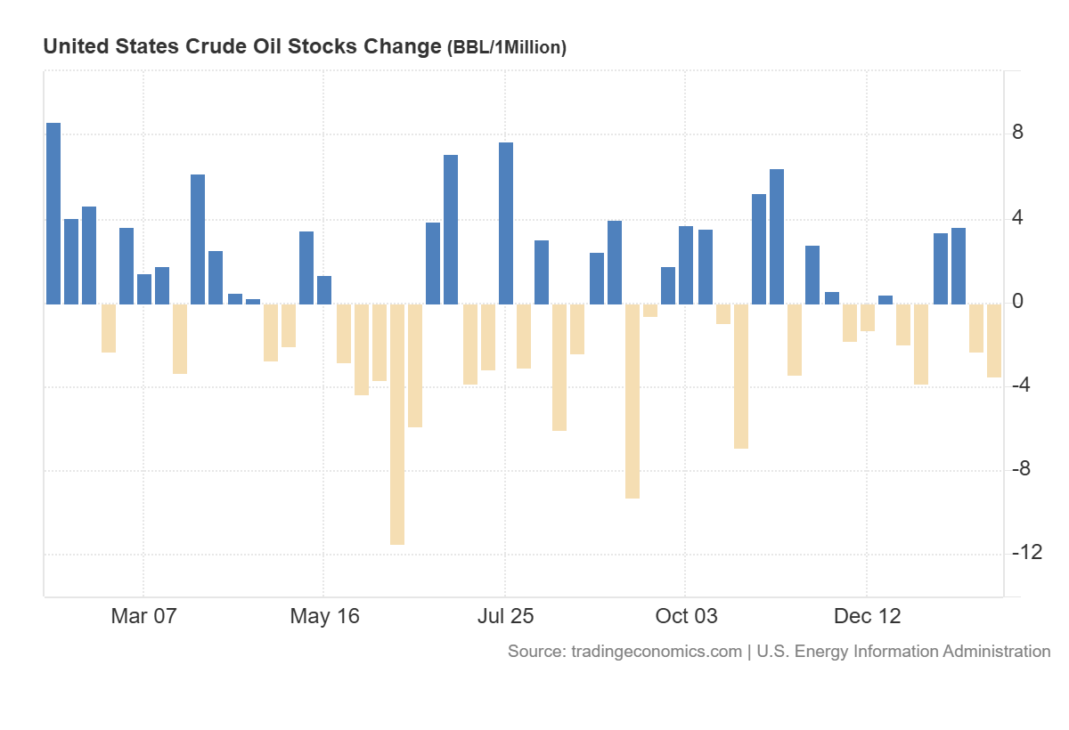 Le scorte di greggio USA sono crollate di 3,455 milioni di barili la scorsa settimana, una cifra ben superiore ai 2 milioni previsti dagli analisti. Il calo è stato causato in gran parte dalle tempeste invernali che hanno interrotto l’offerta.